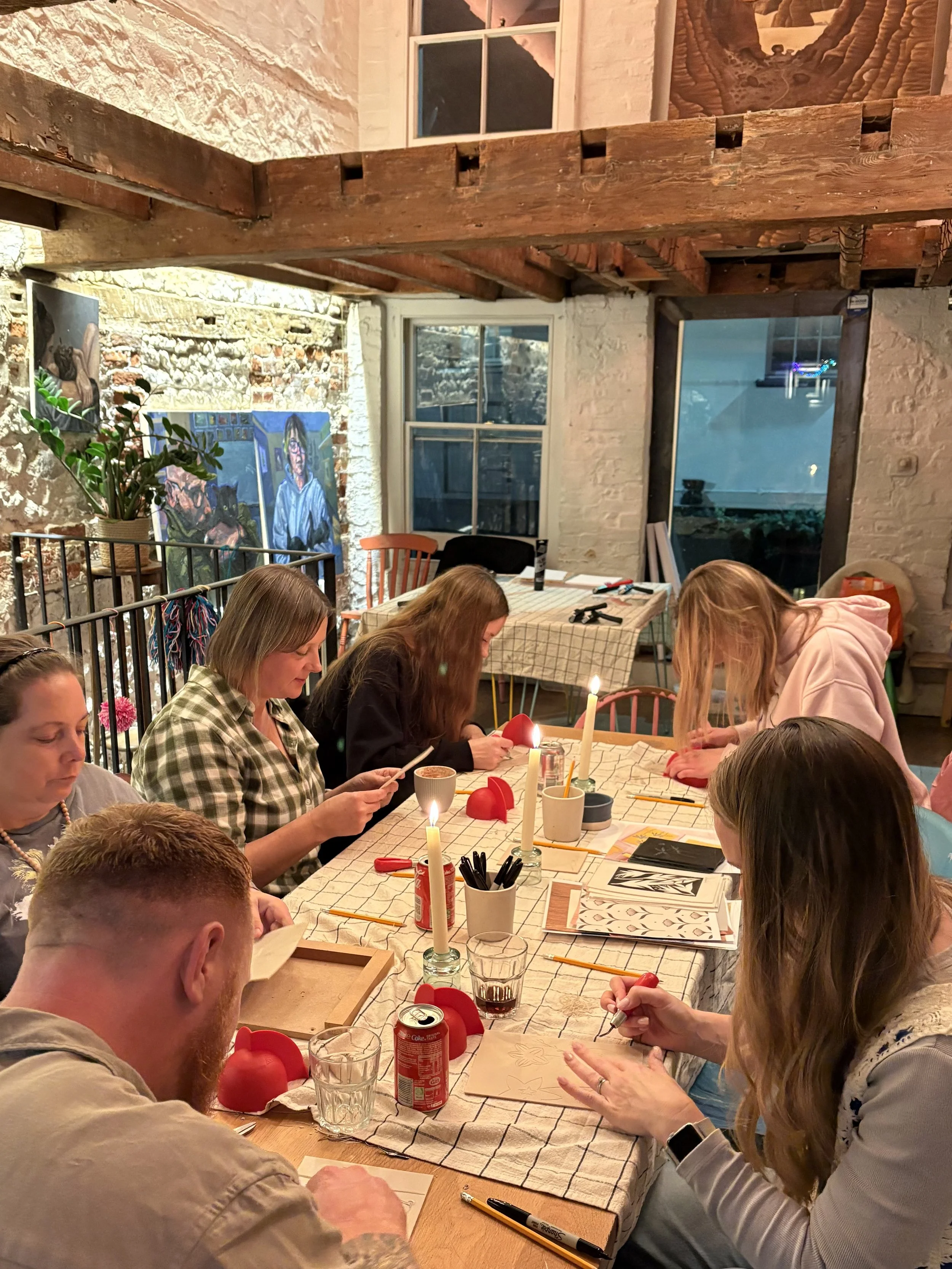 If you are interested in trying Lino Printing, I lead workshops which are perfect for beginners. These include an introduction to Lino printing as well as a carving and printing demonstration with all materials included. You will be able to carve your own designs which can then be taken home as prints, suitable for framing or used as cards.